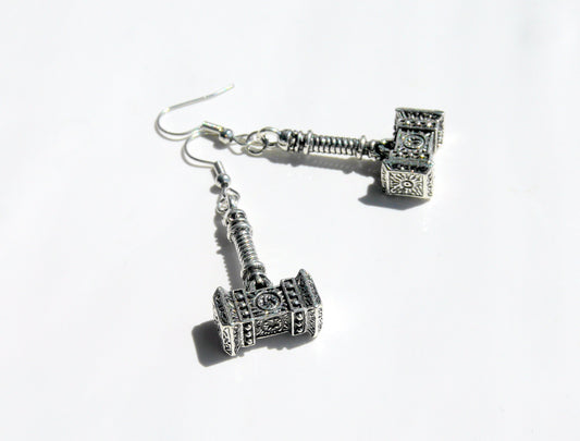 Ladies Teens Fantasy Silver Toned Hammer Mace Shape Earrings