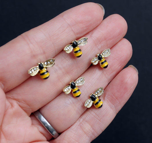 Mini Diamante Rhinestone Honey Bee Shaped Hair Pins (Set of 5)