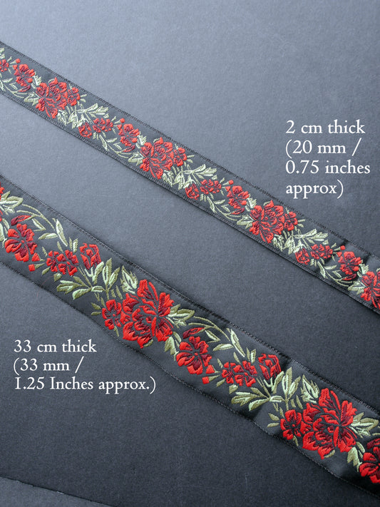 Black and Red Rose Embroidered Choker (Non Elasticated)