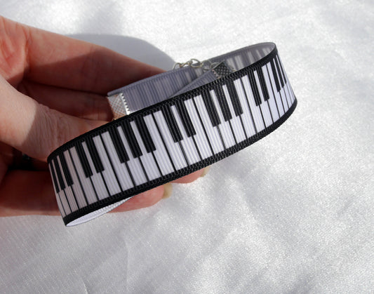 Black Music Theme Piano Key Print Choker (Non Elasticated)