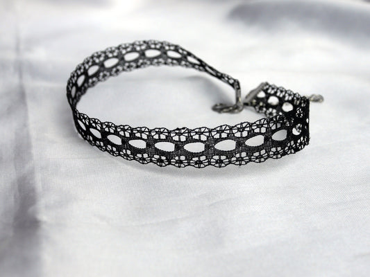Black Lace Mesh Style Choker Necklace (Non Elasticated)