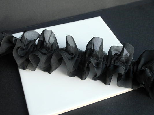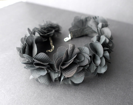 Black Flower Style Ruffle Choker Necklace (Non Elasticated)