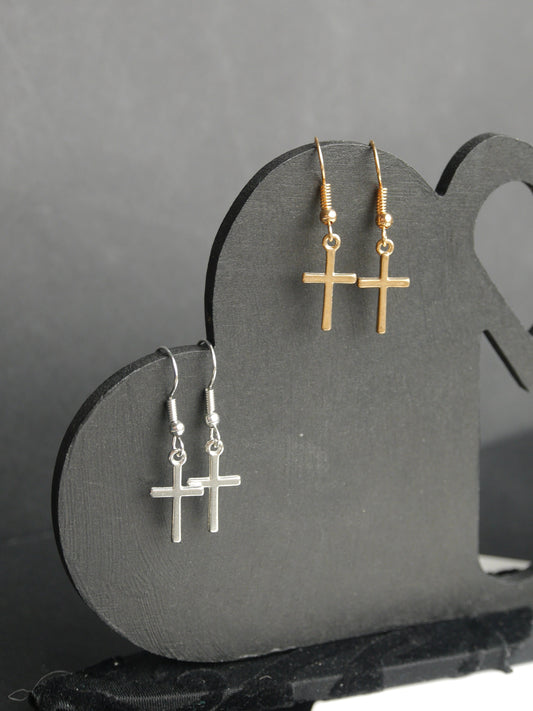 Small Silver Tone Cross or Gold Tone Cross Earrings