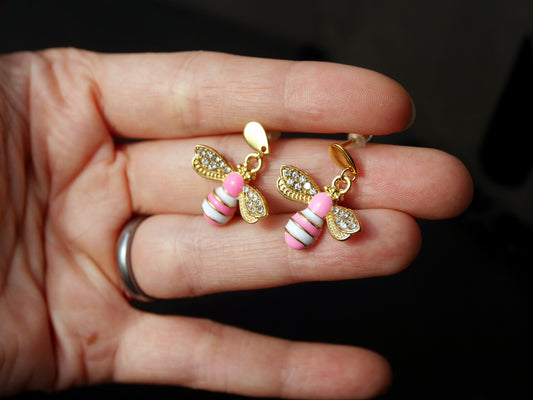 Stud Diamante Pink and Gold Honeybee Shaped Earrings