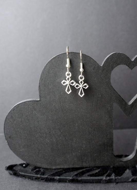 Silver Tone Holy Cross Shaped Earrings (Ear Hook, Stud or Clip On)