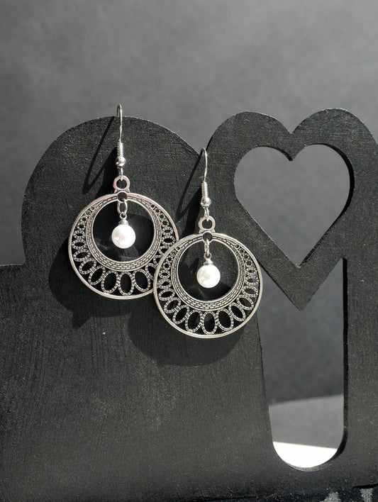 Silver Toned Round Filigree Earrings