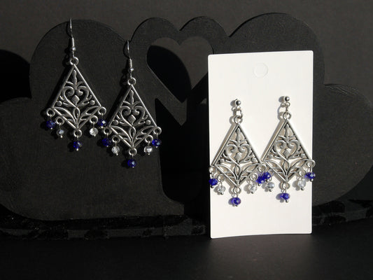 Silver and Navy Blue Filigree Earrings (Ear Hook, Stud and Clip On)