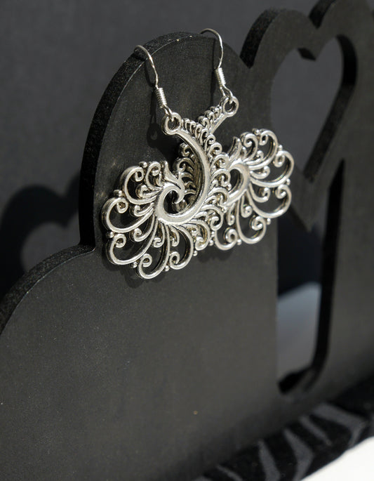 Silver Toned Swirling Filigree Statement Dangle Drop Earrings