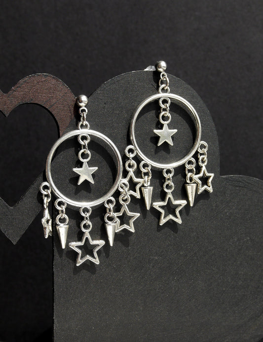 Silver Toned Hoop Stars and Spikes Style Earrings (Ear Hook, Stud and Clip On)