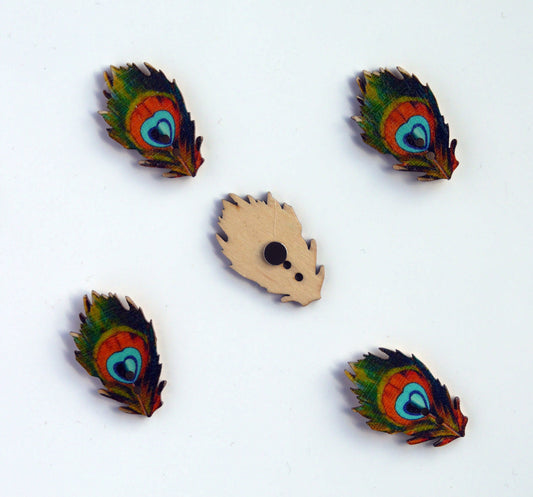 Peacock Feather Shaped Wooden Fridge Magnets (Set of 5 Magnets)