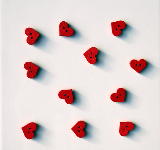 Red Heart Shaped Wooden Mini Fridge Magnets (Set of 5 Magnets)