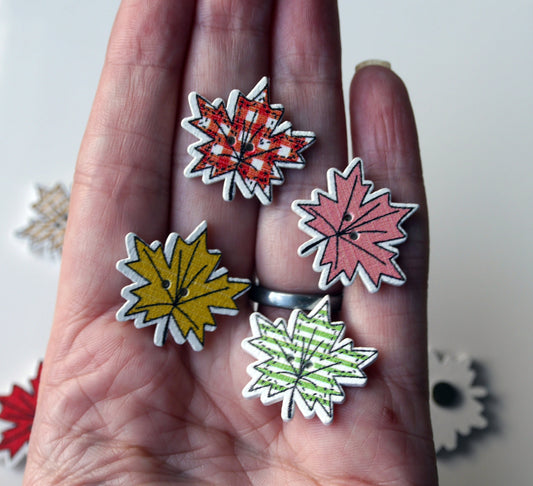 Maple Leaf Shaped Colourful Wooden Fridge Magnets (Set of 5 Magnets)
