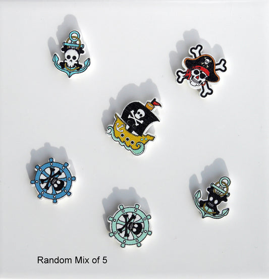 Pirate Shaped Wooden Fridge Magnets (Set of 5 Magnets)