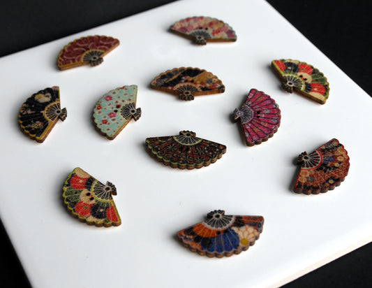Oriental Fan Shaped Wooden Mini Fridge Magnets (Set of 5 Magnets)
