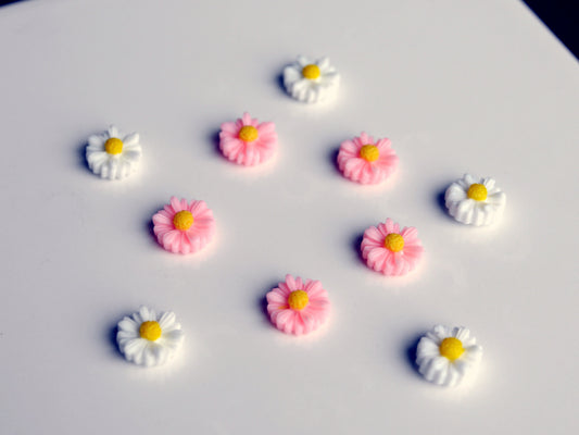 Pink and White Flower Mini Resin Fridge Magnets (Set of 10 Magnets)