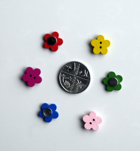 Mini Flower Shaped Colourful Wooden Mini Fridge Magnets (Set of 10)