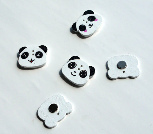 Panda Face Shaped Wooden Mini Fridge Magnets (Set of 5 Magnets)
