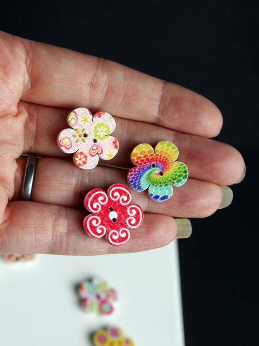 Flower Shaped Colourful Wooden Mini Fridge Magnets (Set of 5 Magnets)