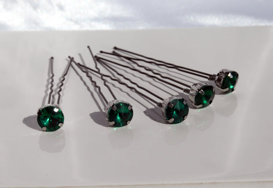 Emerald Deep Green Coloured Diamante Rhinestone Hair Pins (Set of 5)