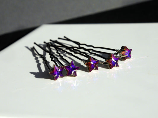 Mini Gold White Purple Star Shaped Hair Pins (Set of 5)