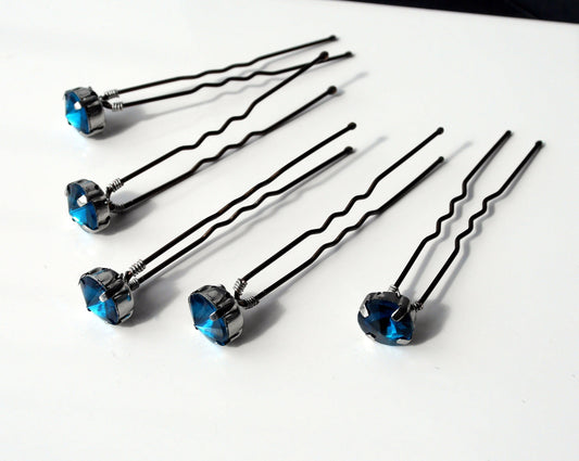 Navy Blue Rhinestone Wedding Hairpins (Set of 5)