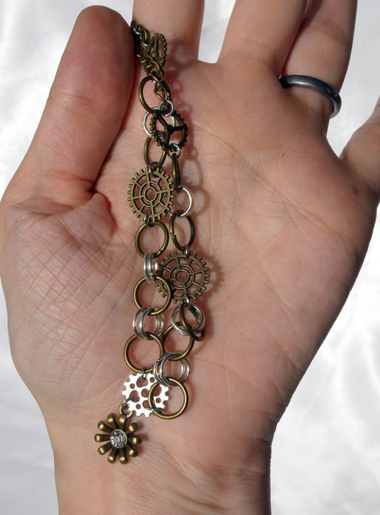 Steampunk Industrial Theme Bronze Flower Bracelet