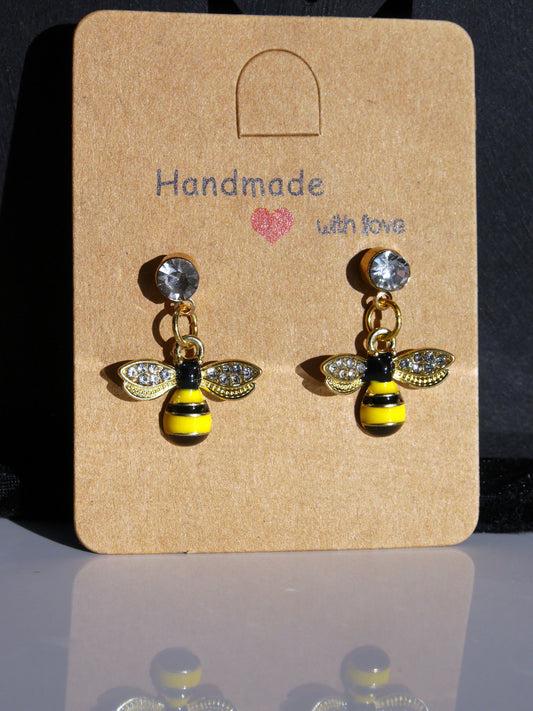 Black and Gold Tone Diamante Honeybee Shaped Earrings