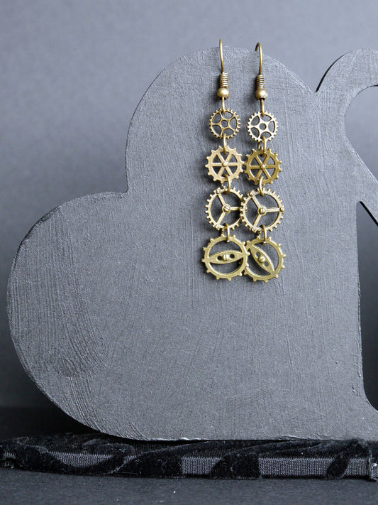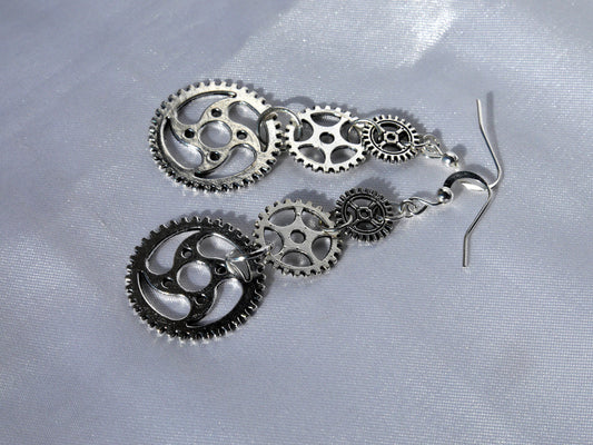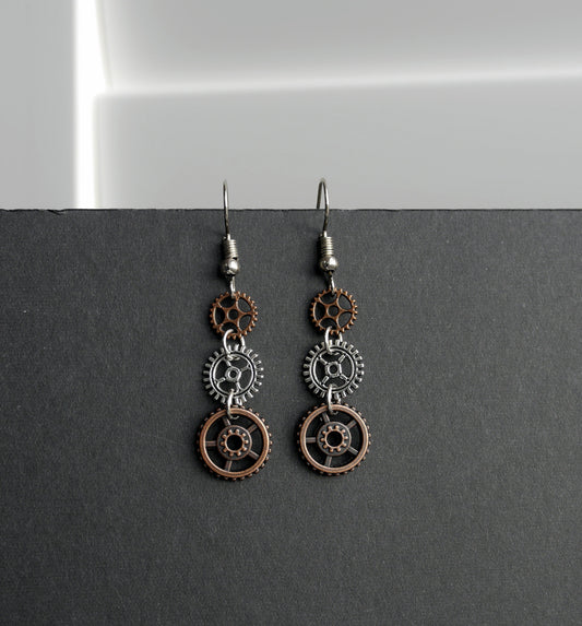 Industrial Style Cog and Gear Steampunk Earrings (Ear Hook, Stud or Clip On)