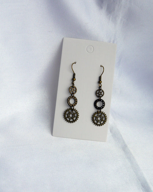 Bronze Gear and Cog Industrial Theme Earrings (Ear Hook, Stud or Clip On)