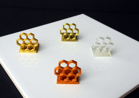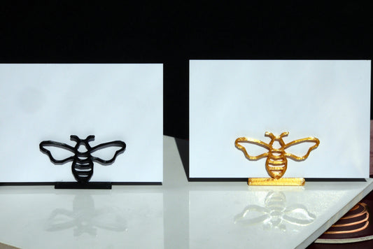 A collection of Insect and Flower Themed Card Stands (Bees, Honeycombs, Butterflies etc). The stands are to hold Name Cards for weddings, parties and events. They are 3D printed and made from PLA Filament (PLA is a fully biodegradable thermoplastic polymer consisting of renewable raw materials).