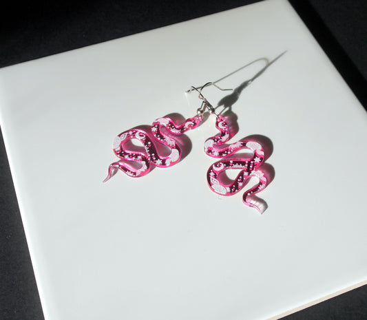 Pink Serpent Snake Shaped Earrings (Ear Hook, Stud or Clip On)