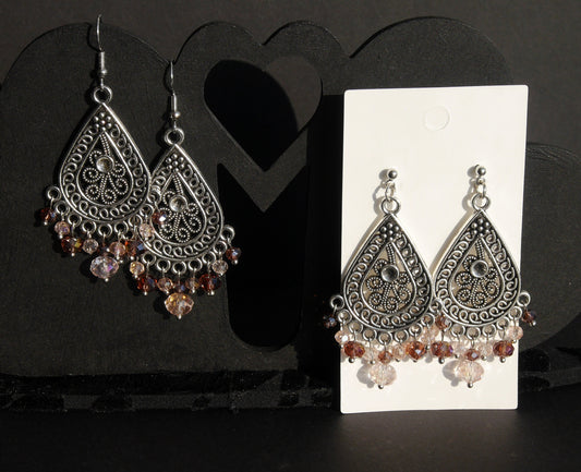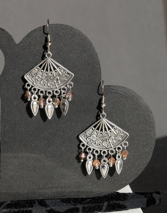 Silver and Rose Colour Filigree Earrings (Ear Hook, Stud and Clip On)