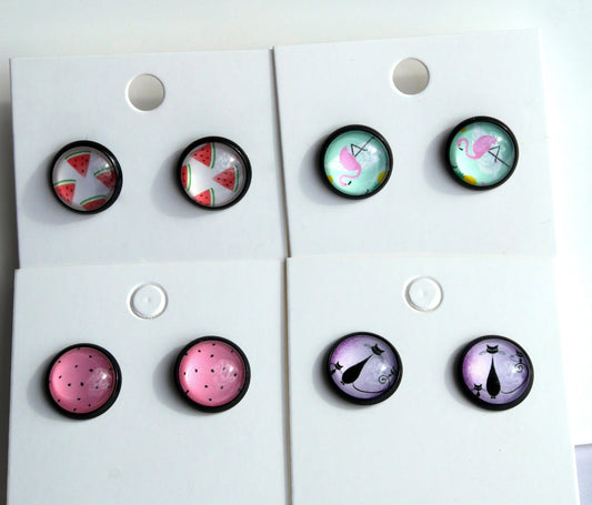 Pink Flamingo Purple Cat Watermelon Stud Earrings