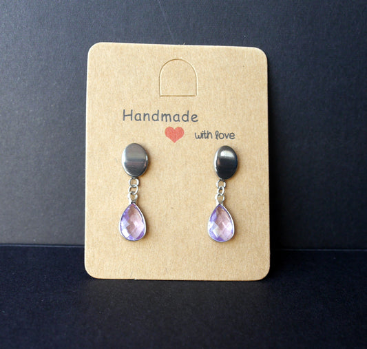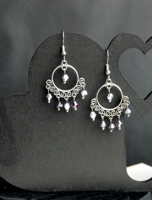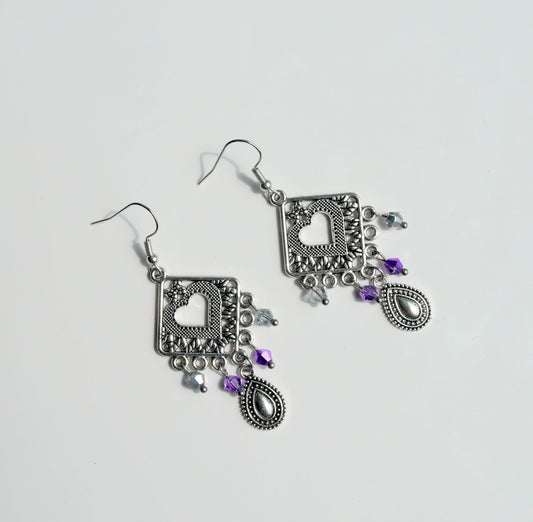Silver Purple Filigree Earrings (Ear Hook, Stud or Clip On)