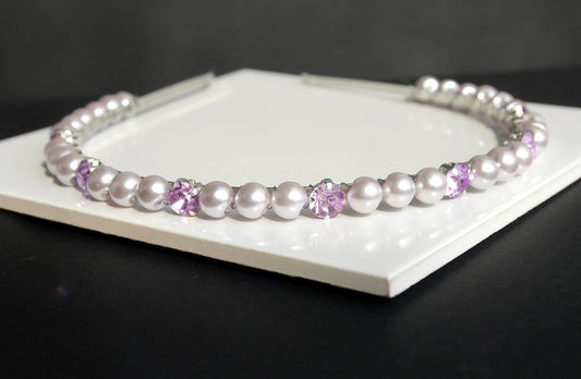 Thin Purple Pearl Wedding Prom Tiara Hair Band