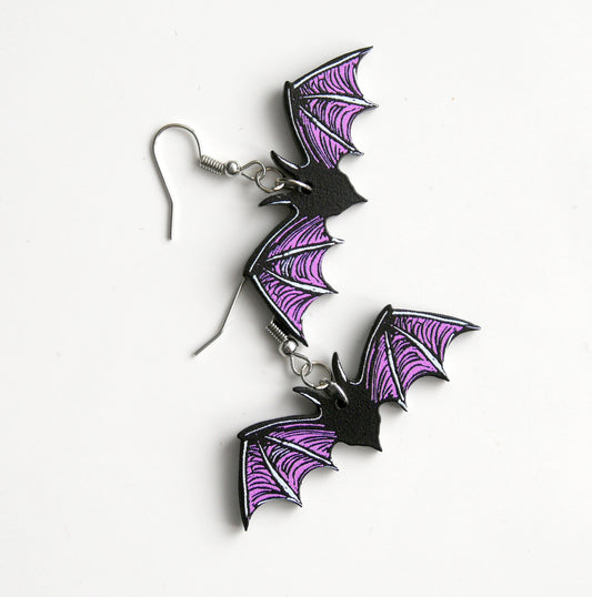 Whimsigoth Purple Bat Shaped Earrings (Ear Hook, Stud and Clip On)