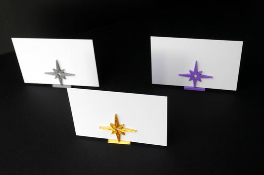 A collection of Christmas and Seasonal Themed Card Stands (Chinese New Year, Christmas, Hanukkah etc). The stands are to hold Name Cards for weddings, parties and events. They are 3D printed and made from PLA Filament (PLA is a fully biodegradable thermoplastic polymer consisting of renewable raw materials).