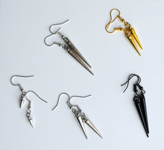 Black Gold Silver or Bronze Spike Earrings