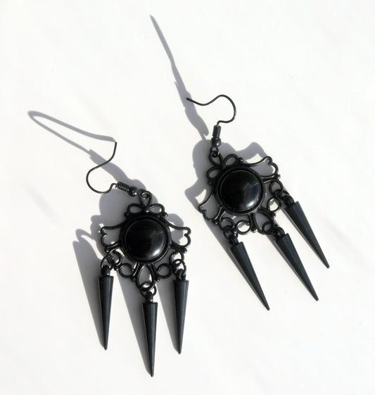 Gothic Black Spike Statement Filigree Earrings