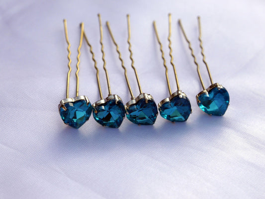 Teal Coloured Rhinestone Diamante Hair Pin Set (Set of 5 Pins)