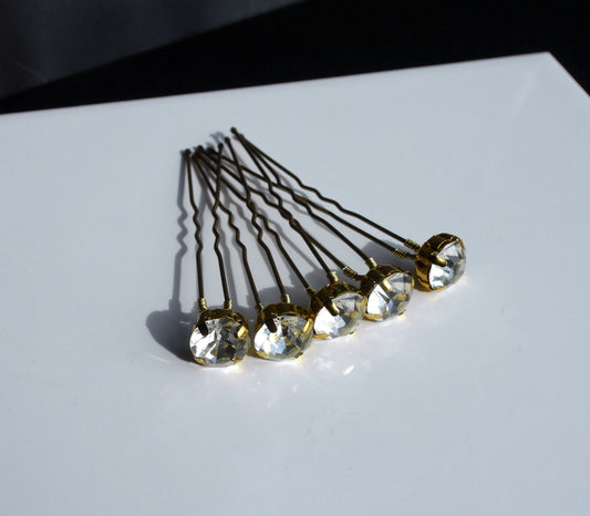 Silver Flower Rhinestone Gold Hair Pins (Set of 5)