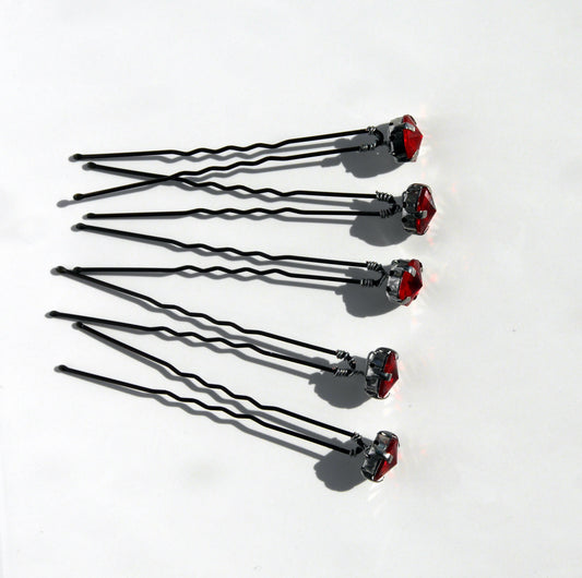 Ruby Red Circular Rhinestone Hair Pins (Set of 5)