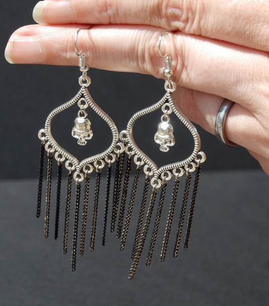 Gothic Silver Mini Skull and Chain Earrings