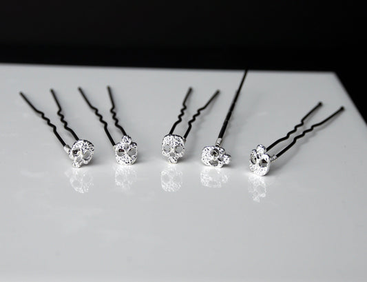 Mini Silver or Gold Skull Shaped Hair Pins (Set of 5)