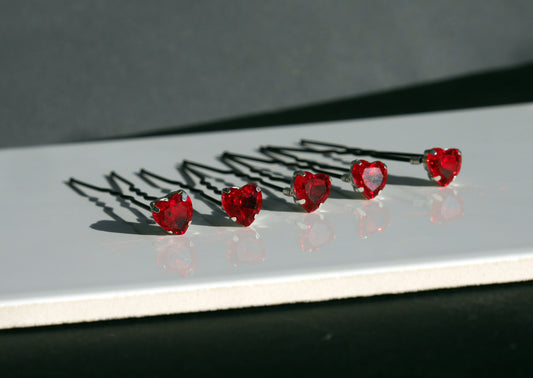 Mini Red and Black Heart Shaped Hair Pins (Set of 5)