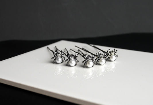 Black and Silver Shaped Mini Spider Hair Pins (Set of 5)