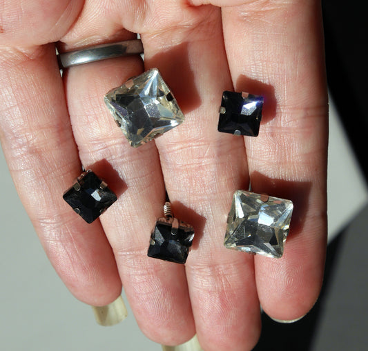 Square Shaped Black or Clear Diamante Hair Pins (Set of 5)