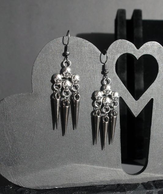 Skull and Spike Filigree Gothic Earrings (Ear Hook, Stud and Clip On)