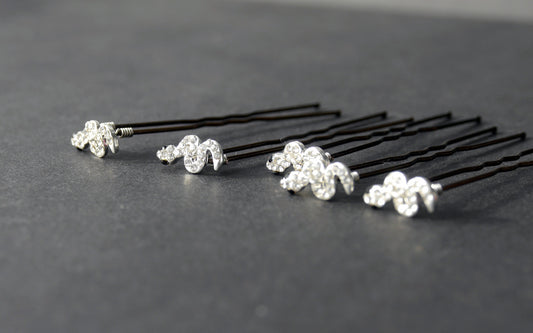 Mini Silver or Gun Metal Rhinestone Diamante Snake Shape Hair Pins (Set of 5)