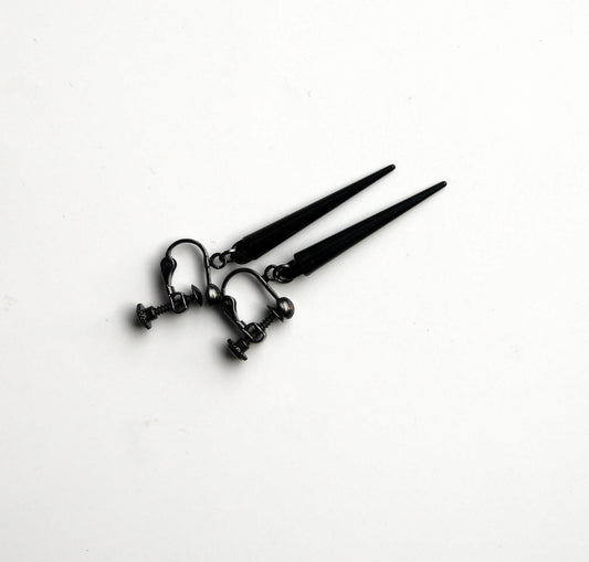 Ladies Teens Clip on Black or Silver Spike Earrings